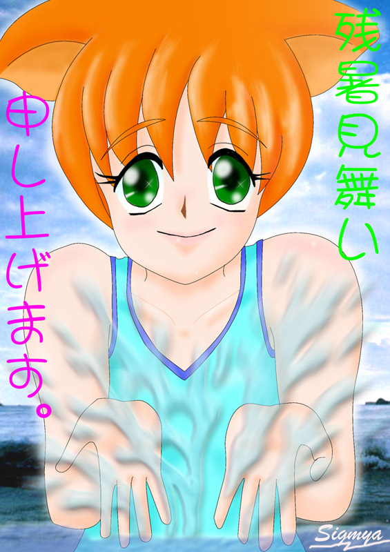 しぐみゃさんに頂いたです。 残暑見舞いCGとして頂きました(^^) 冷たいです〜〜(笑) |