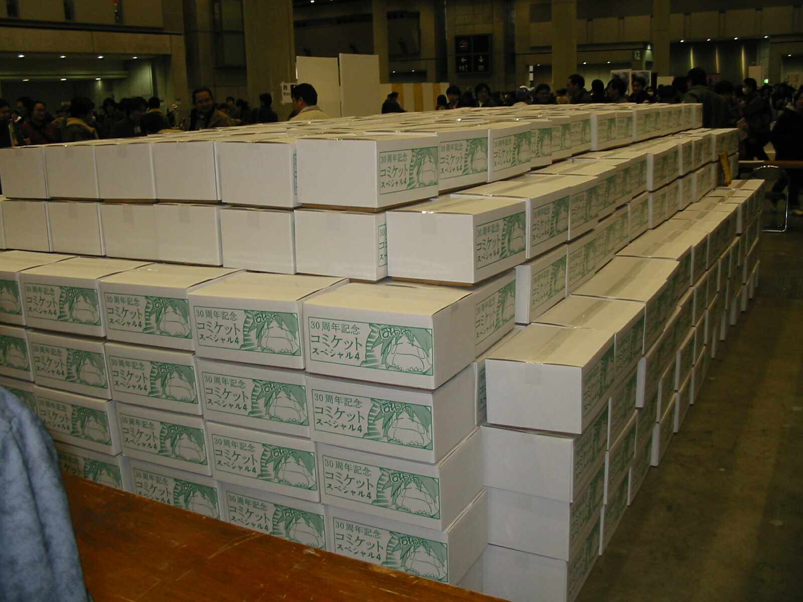 ちなみにこのサークルさんのイベント参加は第2部から、この時間はやって無くて当然なのだが、私を含めネタ写真をとっていく人に取り囲まれていた。 …ちなみにこのサークル、第2部ではこのダンボールを300円で売っていた(汗)。 そうこうしているうちにまだ午前10時半だが、ひととおり第1部は見終えてしまった。 4階のイベントスペースに戻ることも考えたが、こちらも朝から4時間近くいたので全部見終えてしまっている。 というわけで外に出て2部の列に並ぶことにした。 ファミマで昼食を買って列に加わる。 外はぽかぽかいい天気。 しかし黒いコートに黒いズボン、黒いトレーナーを着て黒い帽子を被っている俺には死活問題 はっきり言うと暑い(大汗)。 コートを脱いで適度に水分を補給しながら何とか耐える。 …ちなみにこの頃から睡魔に襲われ始める。 さて、この待機列は途中で西の4階に移動したのだがこのときスタッフはやってくれた。 一昨日から勝手に列を作っていた徹夜組みより先に、昼前から列を作り始めた一般列を先に入れたらしい。 (一応暴動を避けるために一般→徹夜→一般→の用に交互に入れたんだとか) これからも徹夜に対するペナルティはびしびしやっちゃって欲しいもんである。 西館4階の屋外展示場でこれまた3時間ほど待つ。 ぽかぽか陽気にうつらうつら……。 そうこうするうち午後4時になり、第2部開場となった。 2日目(設営・イベントスペース)へ 2日目(第2部)へ |